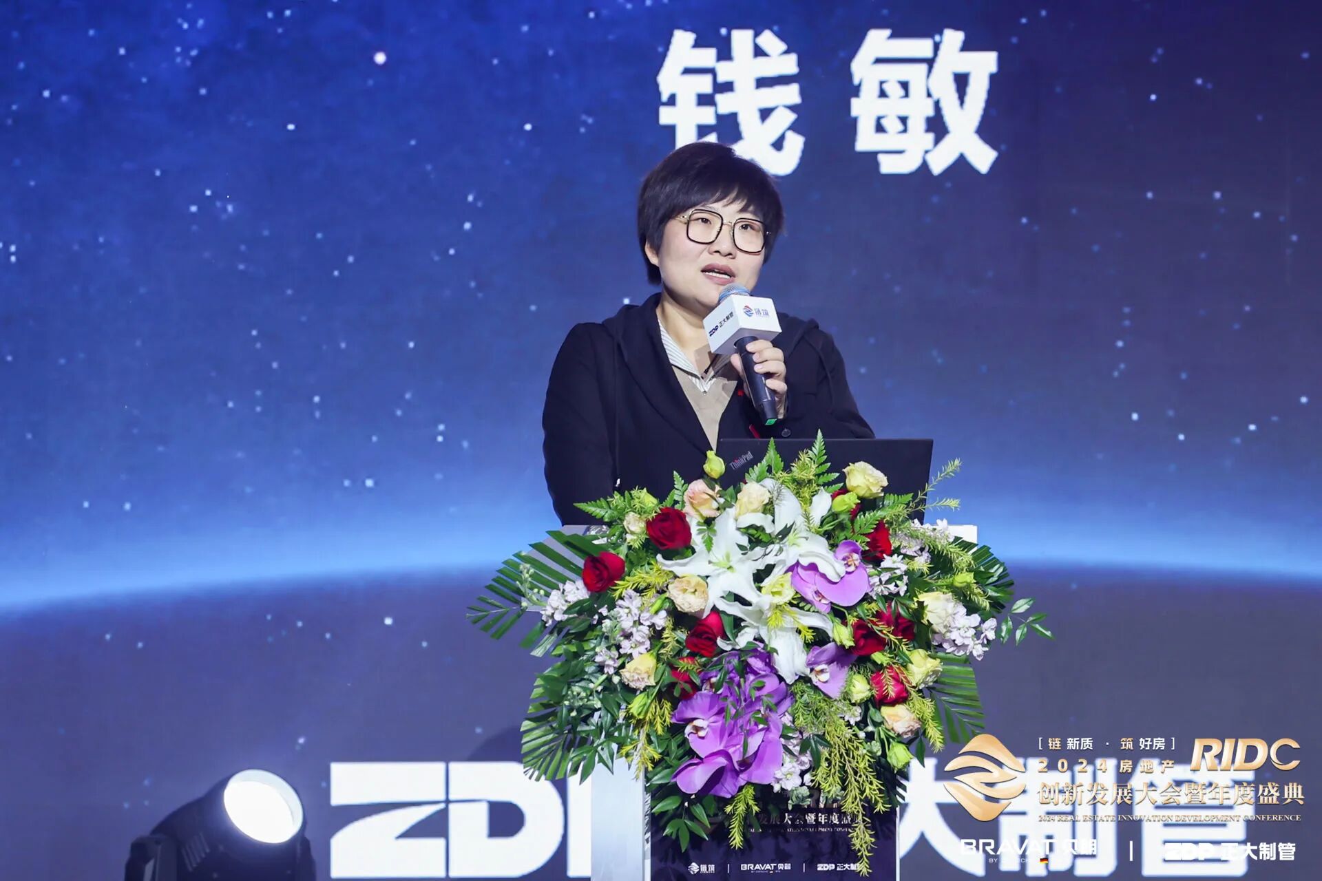 在年度盛典开幕致辞环节,2024房地产产业链年度盛典——冠名单位领导:正大制管集团经营副总裁钱敏女士盛典致开场辞。