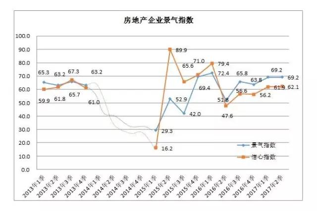 2017年二季度,全联房地产商会企业家信心指数(The CRECC's Developer Confidence Index,简称DCI)与一季度基本持平,企业家信心指数为62.1,高于50线之上,但波动明显趋缓