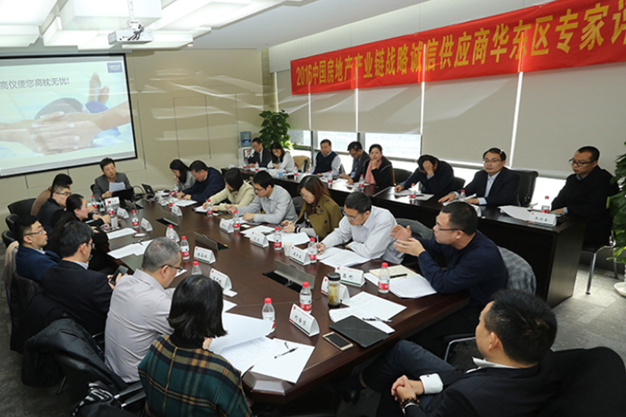 12月9日上午,由全联房地产商会联合相关百度、乐视、旺材电商、大猫电商等机构主办的“2016年中国房地产产业链战略诚信供应商华东区专家评审会”在新城总部控股大厦隆重召开,出席本次华东区测评会的领导、专家有:全联房地产商会常务副秘书长赵正挺,全联房地产商会产业链创新合作分会副会长、新城控股集团股份有限公司副总裁欧阳捷,新城控股集团股份有限公司运营管理中心采购副总监朱传福,世茂集团采购公司总经理陈嘉健、采购总监周东兵,绿地控股集团有限公司工程合约采购副总监张雨岚,旭辉集团股份有限公司采购总监高岩,中南置业副总裁曾志超、上海三湘(集团)有限公司采购中心副总经理张向,阳光城集团集团合约部总计春华,吕彬、绿地集团工程采购部总监鲍磊,上海新长宁(集团)有限公司房地产开发部经理陈敏,北京中瑞岳华造价咨询有限公司上海分公司总经理郑宪国,上海实业发展股份有限公司高级工程师傅申森,上海三盛宏业投资(集团)成本合约部总经理郭跃权,上海三盛王国辉,上海中金地产(集团)成本中心总监董雅滨,上海保集集团采购总监郭兵以及参评本次测评的空调、卫生洁具、热水器、橱柜和开关插座五大类领军企业的供应商朋友。