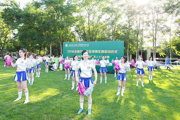 6月24日下午,在充满青春活力、激情四溢的美女拉拉队员开场表演后,为今天的启动仪式拉开了序幕,全联房地产商会产业链创新合作分会秘书长:马学明先生担任本次活动的主持人,首先邀请了全联房地产商会常务副秘书长、产业链足球俱乐部主席:赵正挺先生为俱乐部启动仪式作了精彩开幕致辞,接着由俱乐部首届理事长:中粮置地有限公司工程采购常务副总:任军波先生作了热情幽默的致辞,接下来举行了隆重的俱乐部队旗交接仪式,在几位领导的激情挥舞下,标志着产业链创新合作分会精英足球俱乐部正式扬帆起航。