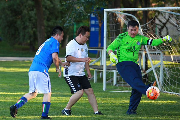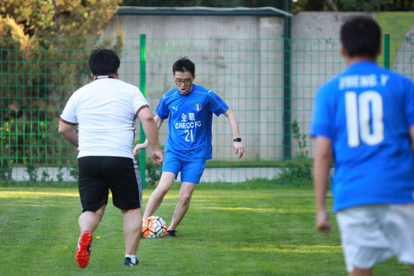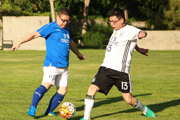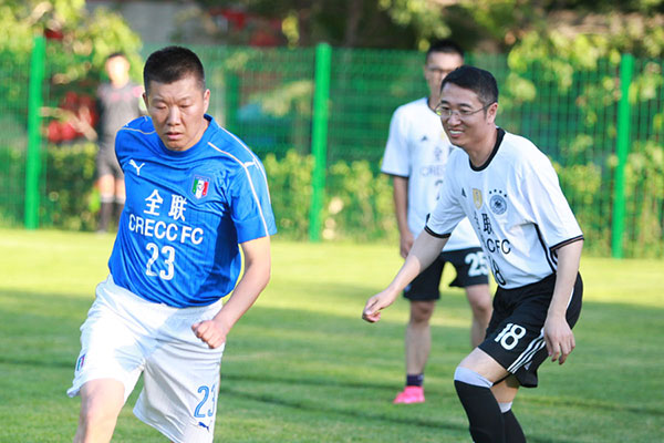 双方开场后就进入了激烈的比赛状态,双方你来我往攻防节奏极快,真是功的漂亮守的更漂亮,双方门将犹如布冯和诺伊尔附体,连续拒绝了对方的多次威胁射门。双方球员的精彩表现不断赢得了观众的热烈掌声。当天下午30度的高温依然影响不了这群“老男孩”的战斗激情。