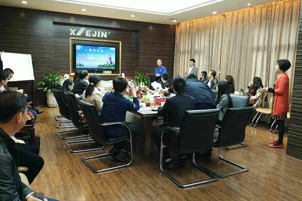 考察团一行在会议室与协进陶瓷领导对产品进行技术交流,并由相关工程师讲解技术难点