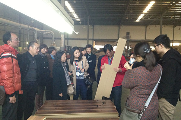 11月30日: 下午,考察团一行来到了中国地板生产基地之一—丹阳,走进了江苏肯帝亚木业科技有限公司,考察团在公司于总、郦总及相关负责人的带领下对在业内始终将高品质放在第一位的肯帝亚地板展厅、木门展厅以及自动化生产线、检测室和生产过程进行了全方位的参观。