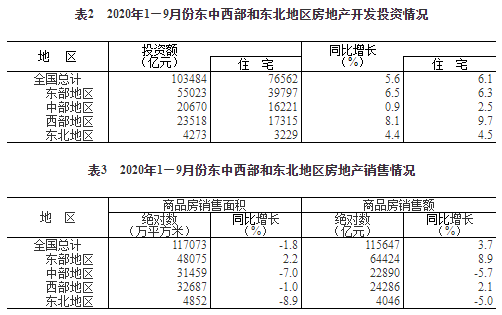 1—9月份,东部地区房地产开发投资55023亿元,同比增长6.5%,增速比1—8月份提高1.0个百分点;中部地区投资20670亿元,增长0.9%,1—8月份为下降1.1%;西部地区投资23518亿元,增长8.1%,增速提高0.2个百分点;东北地区投资4273亿元,增长4.4%,增速提高0.4个百分点。