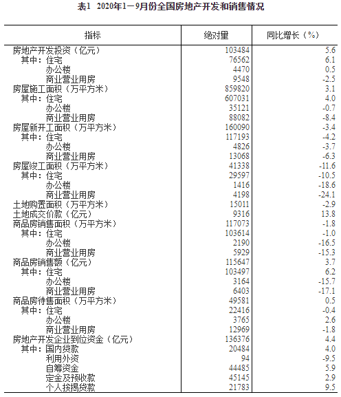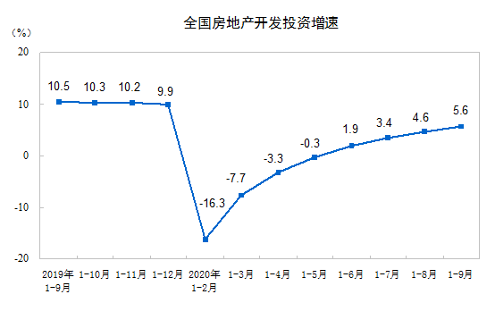 1—9月份,全国房地产开发投资103484亿元,同比增长5.6%,增速比1—8月份提高1.0个百分点。其中,住宅投资76562亿元,增长6.1%,增速提高0.8个百分点。