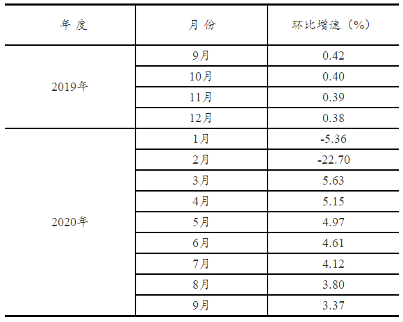 根据季节调整模型自动修正程序,对2019年9月份以来的固定资产投资(不含农户)环比增速进行修订。修订结果及2020年9月份环比数据如下: