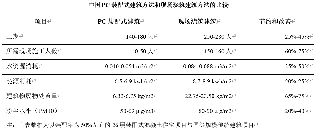年,住建部发布了《装配式混凝土建筑技术体系发展指南(居住建筑)》,对PC装配式建筑的技术发展提供了明确的方向。相比于传统的现场浇筑建筑方法,PC装配式建筑方法在缩短工期、减少人员依赖、降低水资源和能源消耗、减少建筑废料和粉尘排放等方面都比现场浇筑建筑方法有显著的提升。