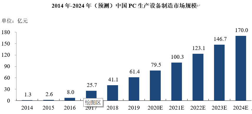 装配式建筑PC生产设备制造市场规模从2014年的1.3亿元增长到2019年的61.4亿元,年均复合增长率达到115.7%。预计到2024年市场规模将进一步增长到170.0亿元,2020年到2024年期间的年均复合增长率达到20.9%。随着新技术的应用不断成熟,PC装配式建筑生产线呈现出自动化、数字化、智能化等特点,成为PC装配式建筑和PC构件生产的强大基础,推动PC构件生产的产能不断提升。