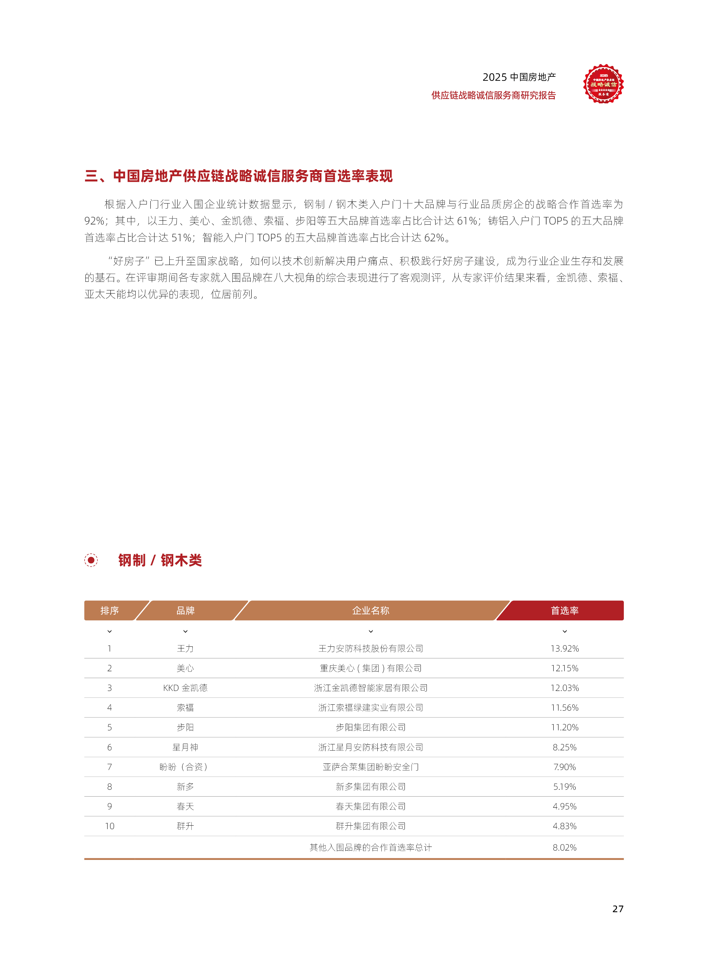 2025中国房地产供应链战略诚信服务商研究报告
