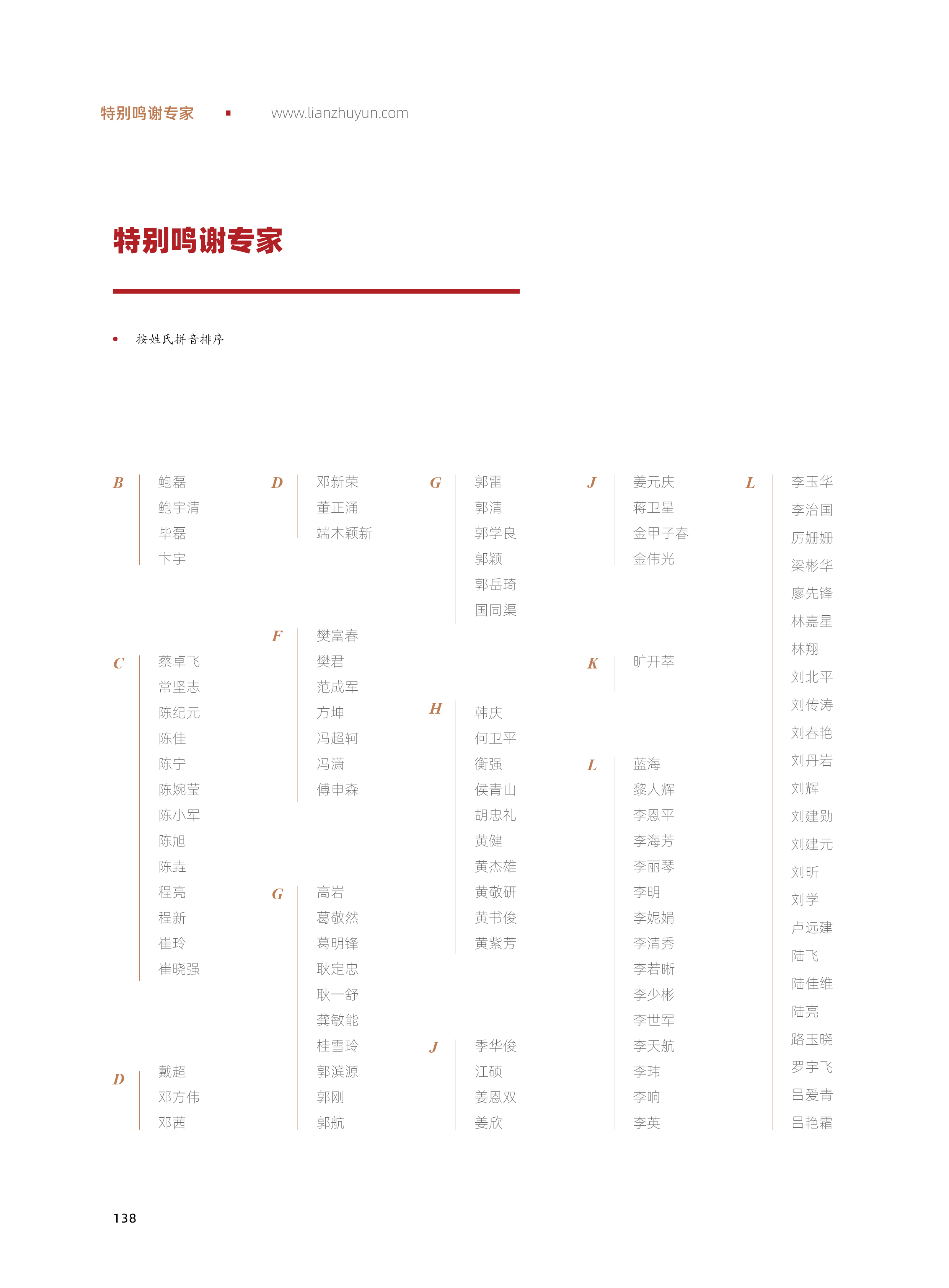 特别鸣谢专家
