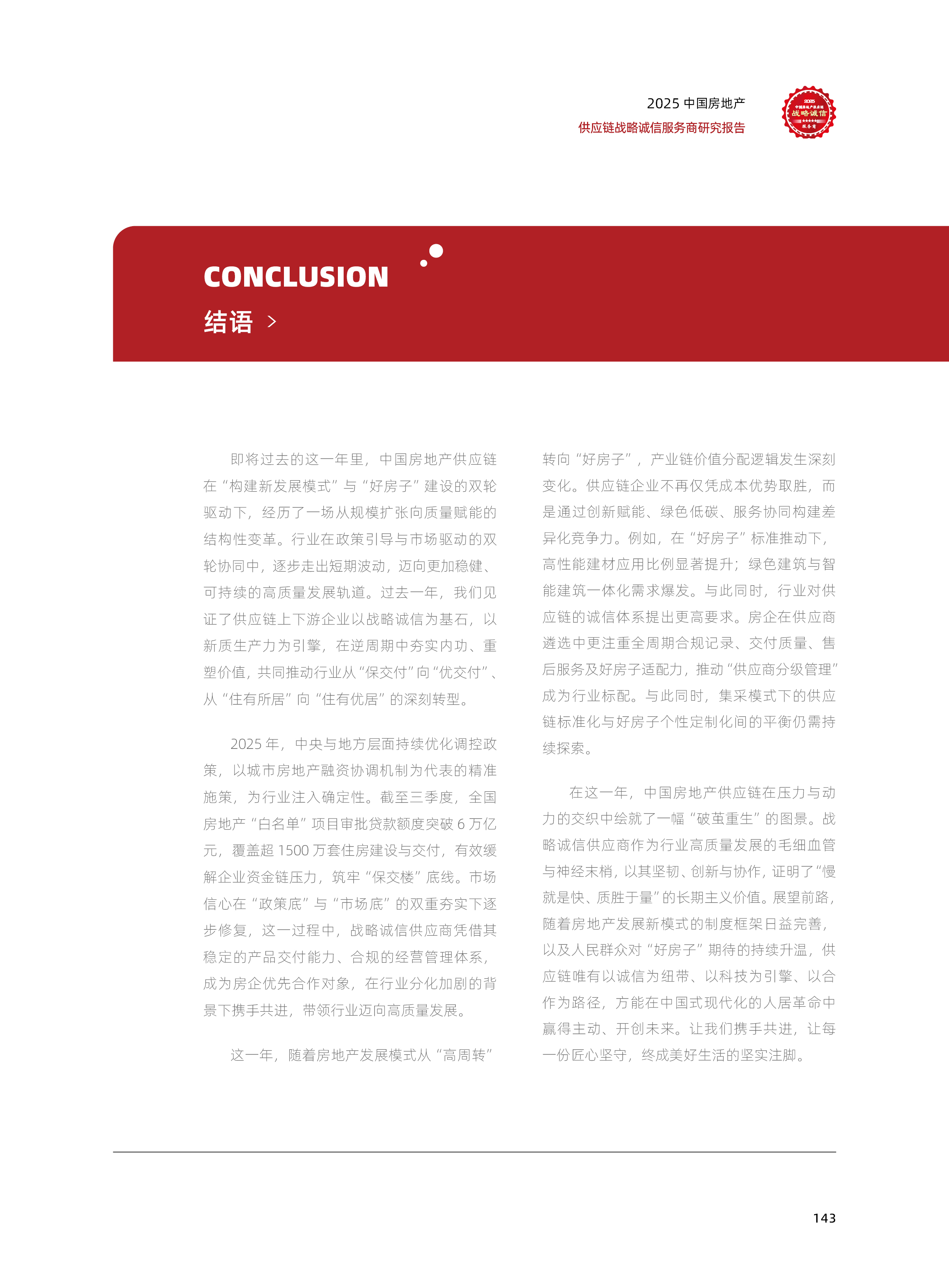 2025中国房地产供应链战略诚信服务商研究报告