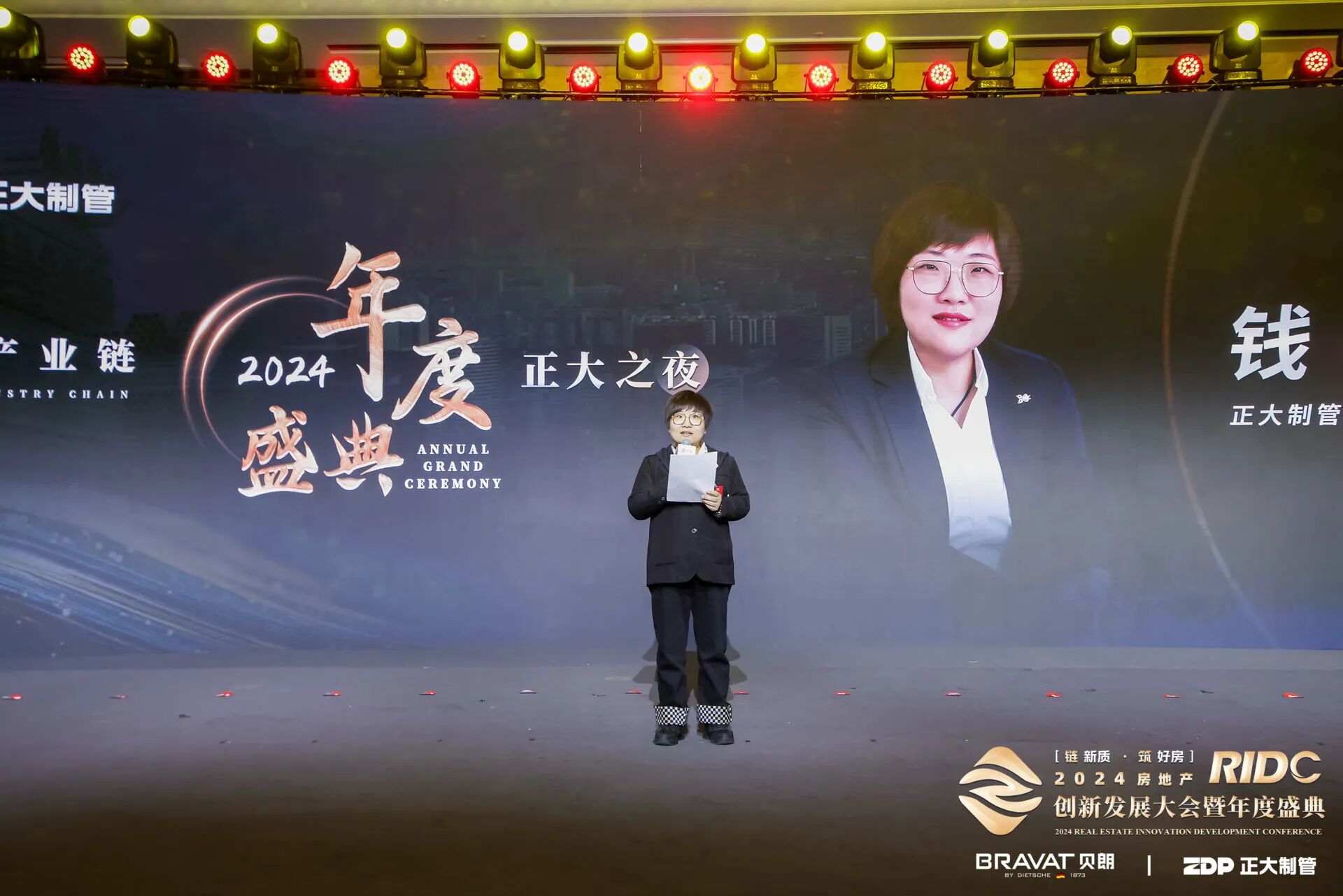 在年度盛典开幕致辞环节,2024房地产产业链年度盛典——冠名单位领导:正大制管集团经营副总裁钱敏女士盛典致开场辞。