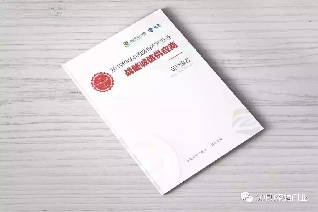 会议上正式发布了《2019年度中国房地产产业链战略诚信供应商研究报告》。据悉,该报告是以中国房地产行业的TOP200强房企、全联房地产商会企业会员数据为依据,通过公益、诚信的视角,经过专家评审等环节得出,能够全面展现各类别供应商在房地产企业内的服务水平,可为全国广大房地产企业2020年选用和采购诚信供应商提供具有权威价值的参考标准。索福门业作为门窗行业领袖品牌,始终以匠心与诚信为两大内在驱动,致力推动产业链之间的联结与共赢,深得行业信赖,荣获2019中国房地产产业链战略诚信供应商-钢木质入户门类第五名!