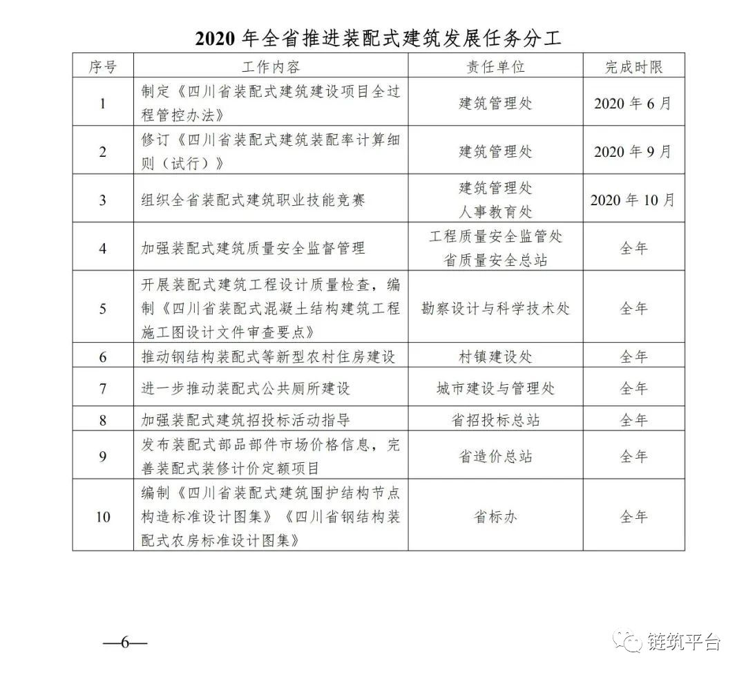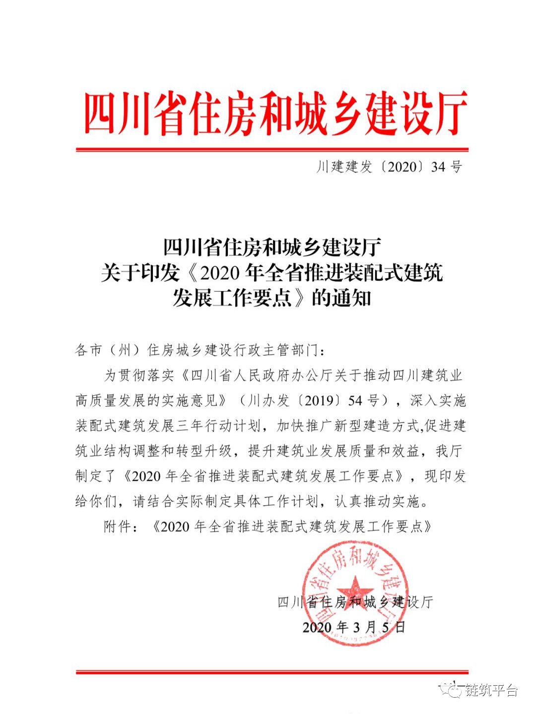 2020年3月5日,四川省住房和城乡建设厅关于印发《2020年全省推进装配式建筑发展工作要点》的通知川建建发〔2020〕34号,《工作要点》中明确规定: