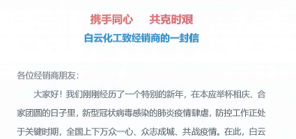 频道:白云化工官方微信 定期发送