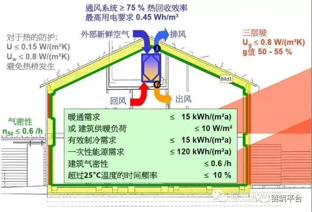 被动房并不一定是零能耗建筑,它跟以前一样还需要少量的热能。如果要放弃独立的供暖系统,那么每平方米的能耗小于1.5L燃料油或者1.5m3天然气[约合15kW·h/(m2·a)]。它比通常的老建筑要节能10倍,即能耗是老建筑的1/10。当然每年的供暖能源费用也相应减少了!