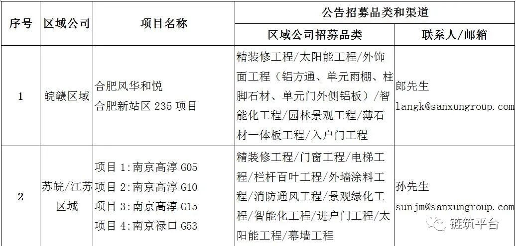 区域公司供应商招募品类和报名渠道(邮件报名)