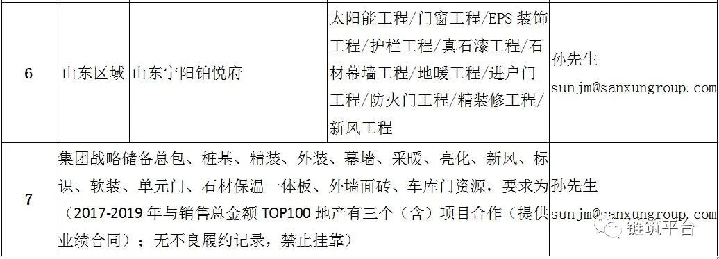 工程类供应商招募基本要求:2017-2019年度销售总金额TOP100地产有三个(含)项目合作(提供业绩合同);无不良履约记录,禁止挂靠。
